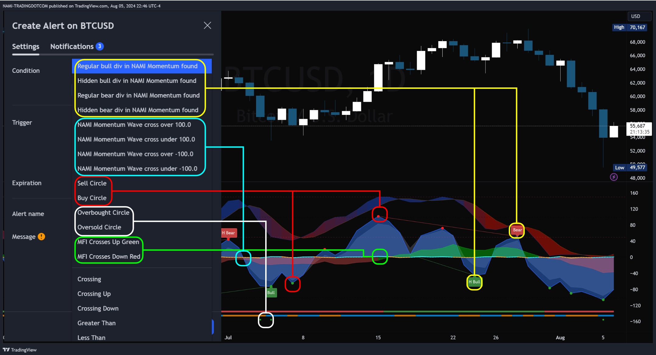 NAMI's alert functions keep you ahead of the market by notifying you instantly of critical movements. Get real-time alerts for money flow crossovers, overbought and oversold conditions, and bullish or bearish divergences. Easy to use and configure, NAMI ensures you stay informed and make timely trading decisions.